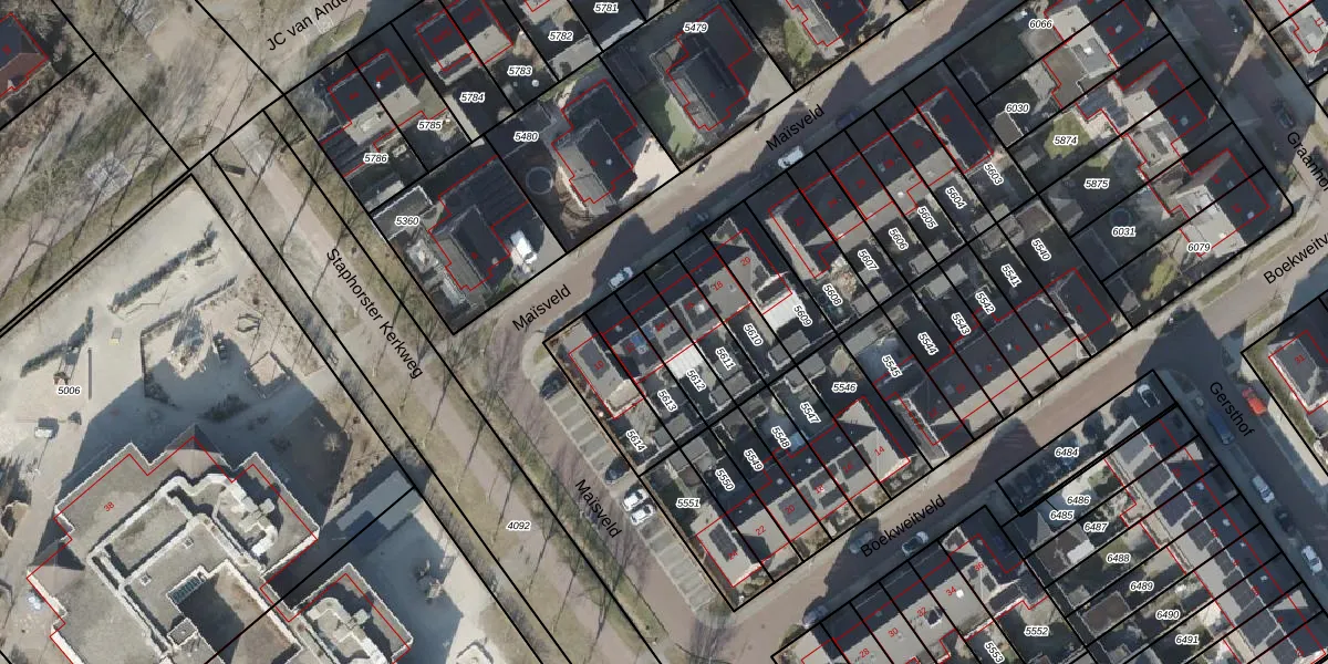 Maïsveld 14 is gelegen op kadastraal perceel SHT02AA5612. Deze kadastrale aanduiding is uniek en wordt gebruikt door het Kadaster om eigendomsrechten en andere zakelijke rechten vast te leggen. Het perceel maakt onderdeel uit van de kadastrale gemeente Staphorst.