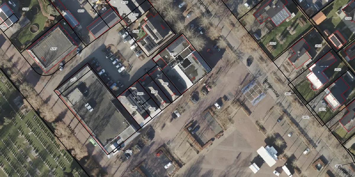 Het perceel waarop Markt 2-a staat heeft een oppervlakte van 587 m². Dit is een groot perceel. De perceeloppervlakte wordt geregistreerd door het Kadaster. Gedetailleerde informatie over de maten van dit perceel kunt u vinden in het rapport Kadastrale kaart met maatvoering van Markt 2-a.