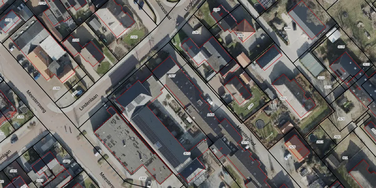 Het perceel waarop Meestershof 10 staat heeft een oppervlakte van 2460 m². Dit is een zeer groot perceel. De perceeloppervlakte wordt geregistreerd door het Kadaster. Gedetailleerde informatie over de maten van dit perceel kunt u vinden in het rapport Kadastrale kaart met maatvoering van Meestershof 10.