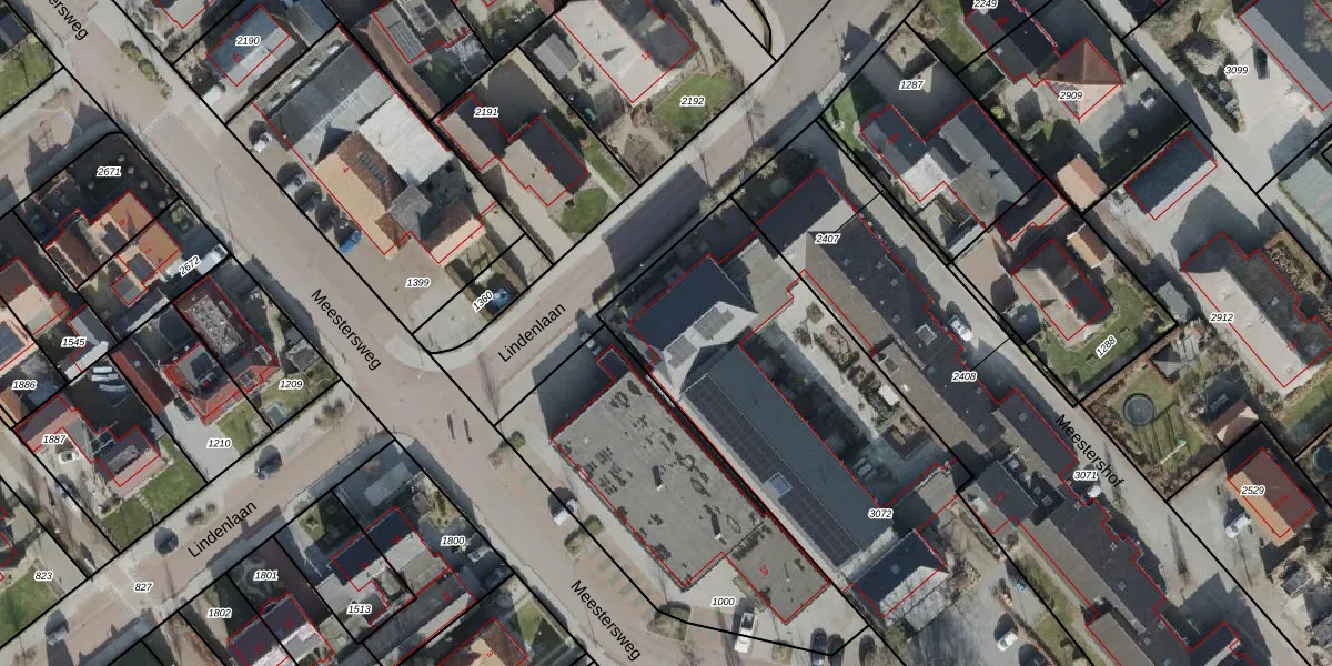 Het perceel waarop Meestershof 14 staat heeft een oppervlakte van 2450 m². Dit is een zeer groot perceel. De perceeloppervlakte wordt geregistreerd door het Kadaster. Gedetailleerde informatie over de maten van dit perceel kunt u vinden in het rapport Kadastrale kaart met maatvoering van Meestershof 14.
