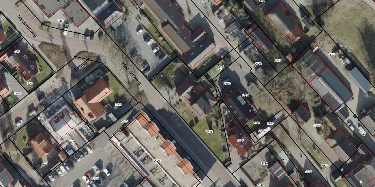 Het perceel waarop Meestersweg 2 staat heeft een oppervlakte van 1074 m². Dit is een zeer groot perceel. De perceeloppervlakte wordt geregistreerd door het Kadaster. Gedetailleerde informatie over de maten van dit perceel kunt u vinden in het rapport Kadastrale kaart met maatvoering van Meestersweg 2.