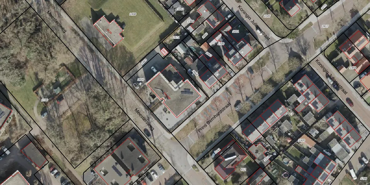 Het perceel waarop Meestersweg 24-e staat heeft een oppervlakte van 1020 m². Dit is een zeer groot perceel. De perceeloppervlakte wordt geregistreerd door het Kadaster. Gedetailleerde informatie over de maten van dit perceel kunt u vinden in het rapport Kadastrale kaart met maatvoering van Meestersweg 24-e.
