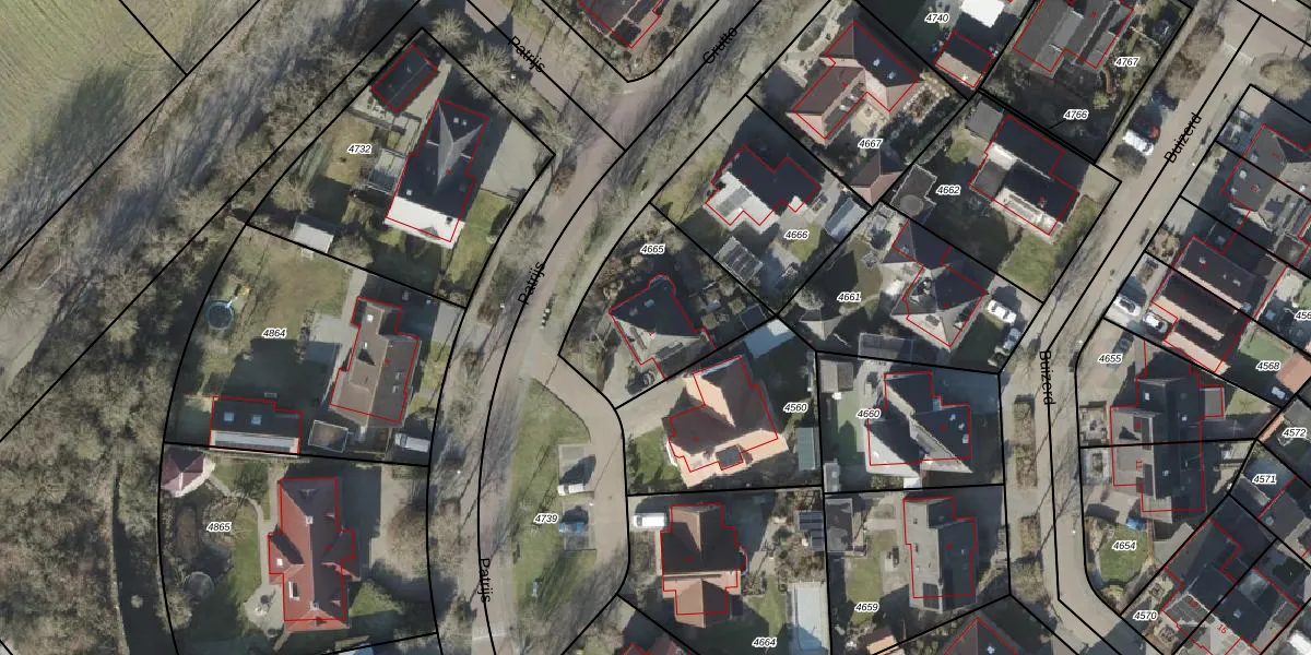 Het perceel waarop Patrijs 1 staat heeft een oppervlakte van 530 m². Dit is een groot perceel. De perceeloppervlakte wordt geregistreerd door het Kadaster. Gedetailleerde informatie over de maten van dit perceel kunt u vinden in het rapport Kadastrale kaart met maatvoering van Patrijs 1.