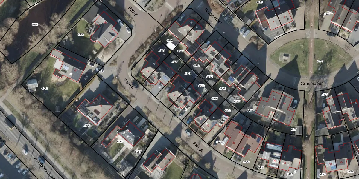 Het perceel waarop Patrijs 17 staat heeft een oppervlakte van 252 m². Dit is een middelgroot perceel. De perceeloppervlakte wordt geregistreerd door het Kadaster. Gedetailleerde informatie over de maten van dit perceel kunt u vinden in het rapport Kadastrale kaart met maatvoering van Patrijs 17.