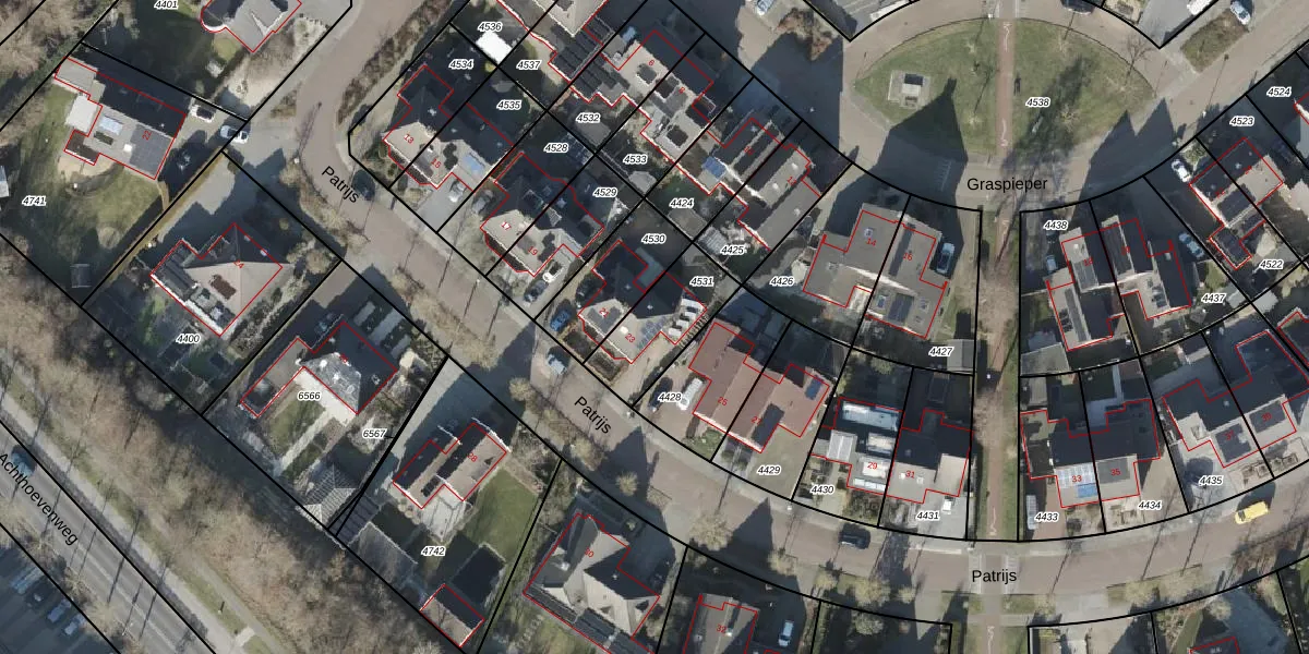 Het perceel waarop Patrijs 23 staat heeft een oppervlakte van 252 m². Dit is een middelgroot perceel. De perceeloppervlakte wordt geregistreerd door het Kadaster. Gedetailleerde informatie over de maten van dit perceel kunt u vinden in het rapport Kadastrale kaart met maatvoering van Patrijs 23.
