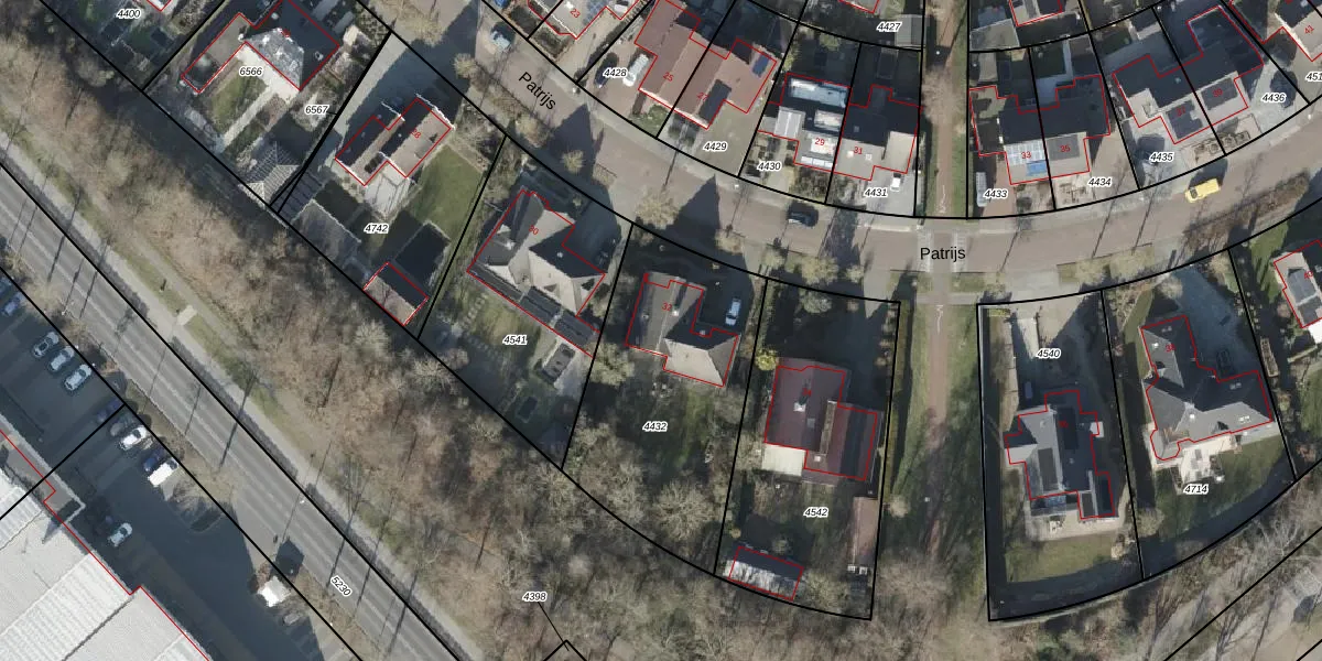 Het perceel waarop Patrijs 32 staat heeft een oppervlakte van 1023 m². Dit is een zeer groot perceel. De perceeloppervlakte wordt geregistreerd door het Kadaster. Gedetailleerde informatie over de maten van dit perceel kunt u vinden in het rapport Kadastrale kaart met maatvoering van Patrijs 32.