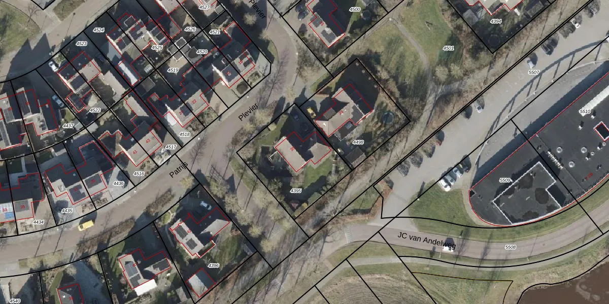 Het perceel waarop Plevier 35 staat heeft een oppervlakte van 733 m². Dit is een groot perceel. De perceeloppervlakte wordt geregistreerd door het Kadaster. Gedetailleerde informatie over de maten van dit perceel kunt u vinden in het rapport Kadastrale kaart met maatvoering van Plevier 35.