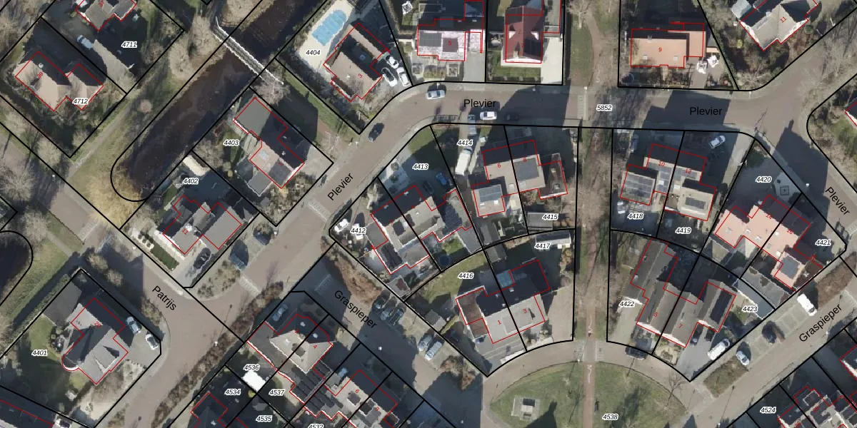 Het perceel waarop Plevier 4 staat heeft een oppervlakte van 409 m². Dit is een groot perceel. De perceeloppervlakte wordt geregistreerd door het Kadaster. Gedetailleerde informatie over de maten van dit perceel kunt u vinden in het rapport Kadastrale kaart met maatvoering van Plevier 4.
