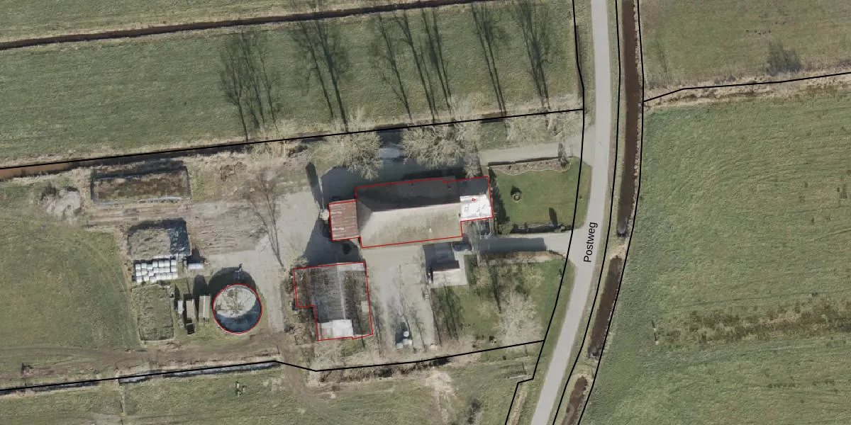Het perceel waarop Postweg 4 staat heeft een oppervlakte van 4,6 ha. Dit is een zeer groot perceel. De perceeloppervlakte wordt geregistreerd door het Kadaster. Gedetailleerde informatie over de maten van dit perceel kunt u vinden in het rapport Kadastrale kaart met maatvoering van Postweg 4.