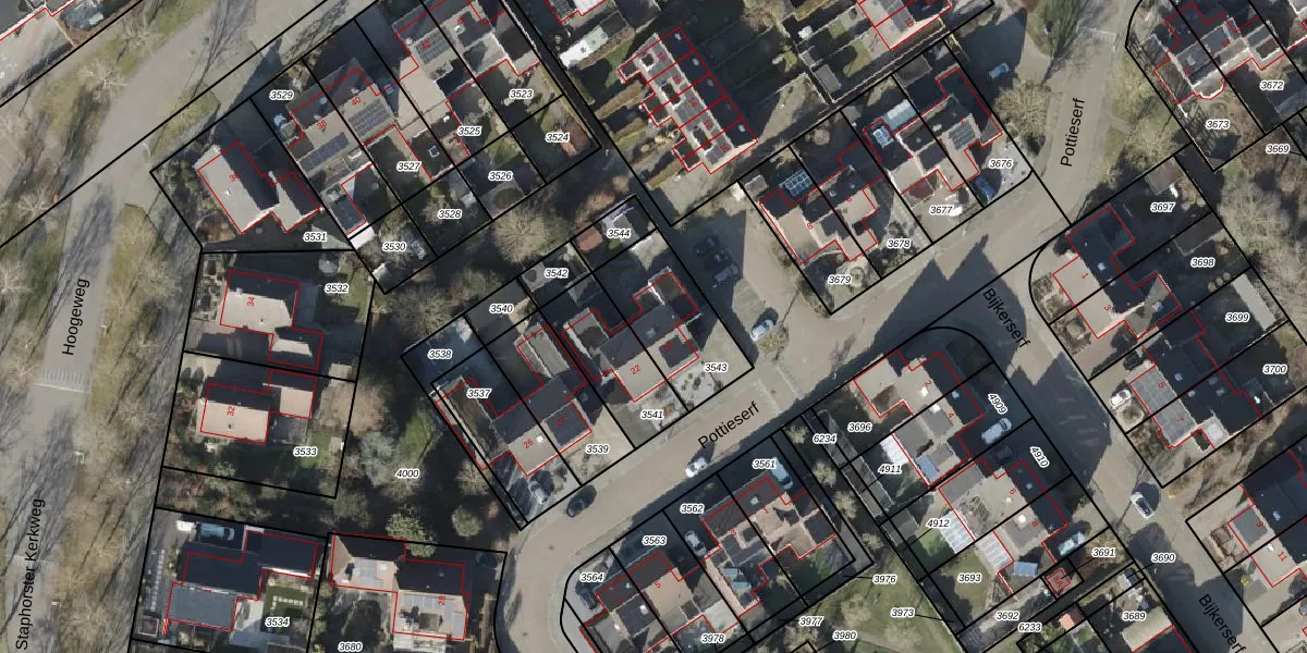 Pottieserf 20 is gelegen op kadastraal perceel SHT02AA3543. Deze kadastrale aanduiding is uniek en wordt gebruikt door het Kadaster om eigendomsrechten en andere zakelijke rechten vast te leggen. Het perceel maakt onderdeel uit van de kadastrale gemeente Staphorst.