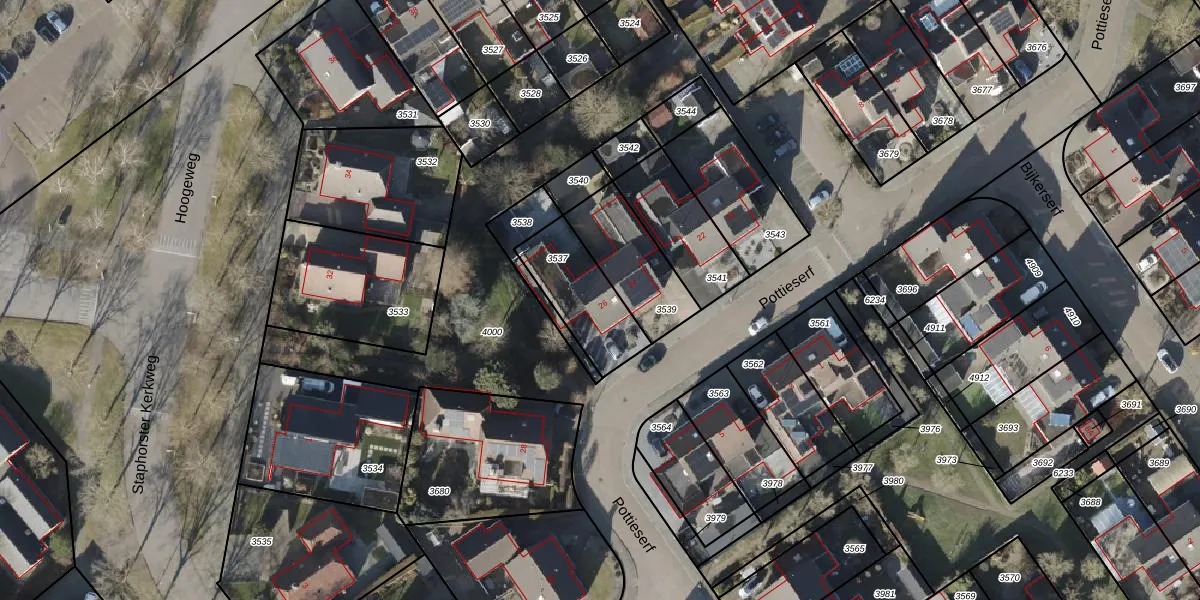 Gebruik de zoekbalk of klik op een perceel voor informatie over de adressen binnen dit perceel.