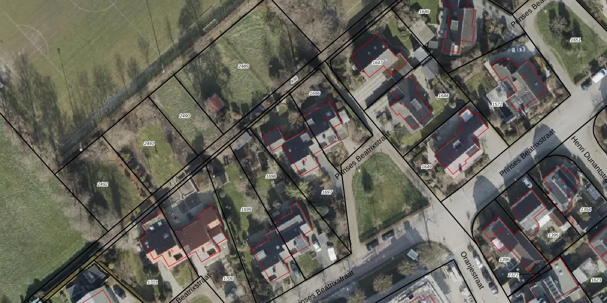 Het perceel waarop Prinses Beatrixstraat 13 staat heeft een oppervlakte van 629 m². Dit is een groot perceel. De perceeloppervlakte wordt geregistreerd door het Kadaster. Gedetailleerde informatie over de maten van dit perceel kunt u vinden in het rapport Kadastrale kaart met maatvoering van Prinses Beatrixstraat 13.