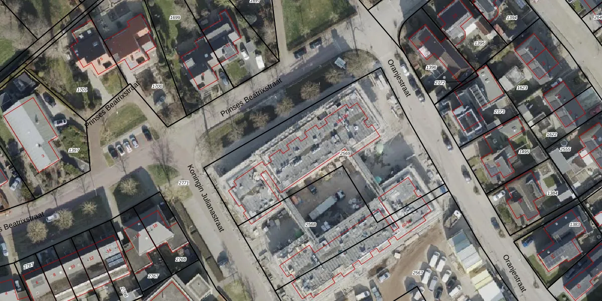 Het perceel waarop Prinses Beatrixstraat 18-c staat heeft een oppervlakte van 2078 m². Dit is een zeer groot perceel. De perceeloppervlakte wordt geregistreerd door het Kadaster. Gedetailleerde informatie over de maten van dit perceel kunt u vinden in het rapport Kadastrale kaart met maatvoering van Prinses Beatrixstraat 18-c.