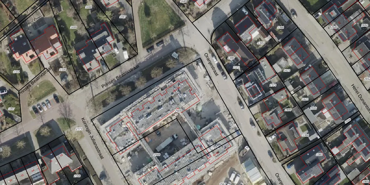 Het perceel waarop Prinses Beatrixstraat 18-r staat heeft een oppervlakte van 2078 m². Dit is een zeer groot perceel. De perceeloppervlakte wordt geregistreerd door het Kadaster. Gedetailleerde informatie over de maten van dit perceel kunt u vinden in het rapport Kadastrale kaart met maatvoering van Prinses Beatrixstraat 18-r.