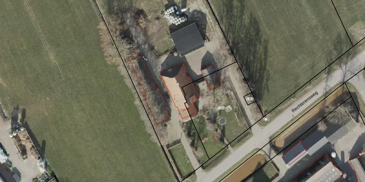 Het perceel waarop Rechterensweg 19 staat heeft een oppervlakte van 4,6 ha. Dit is een zeer groot perceel. De perceeloppervlakte wordt geregistreerd door het Kadaster. Gedetailleerde informatie over de maten van dit perceel kunt u vinden in het rapport Kadastrale kaart met maatvoering van Rechterensweg 19.