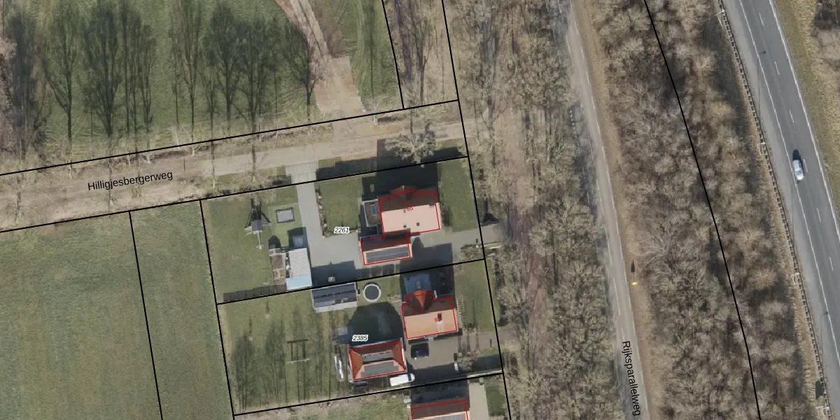 Het perceel waarop Rijksparallelweg 65 staat heeft een oppervlakte van 1615 m². Dit is een zeer groot perceel. De perceeloppervlakte wordt geregistreerd door het Kadaster. Gedetailleerde informatie over de maten van dit perceel kunt u vinden in het rapport Kadastrale kaart met maatvoering van Rijksparallelweg 65.