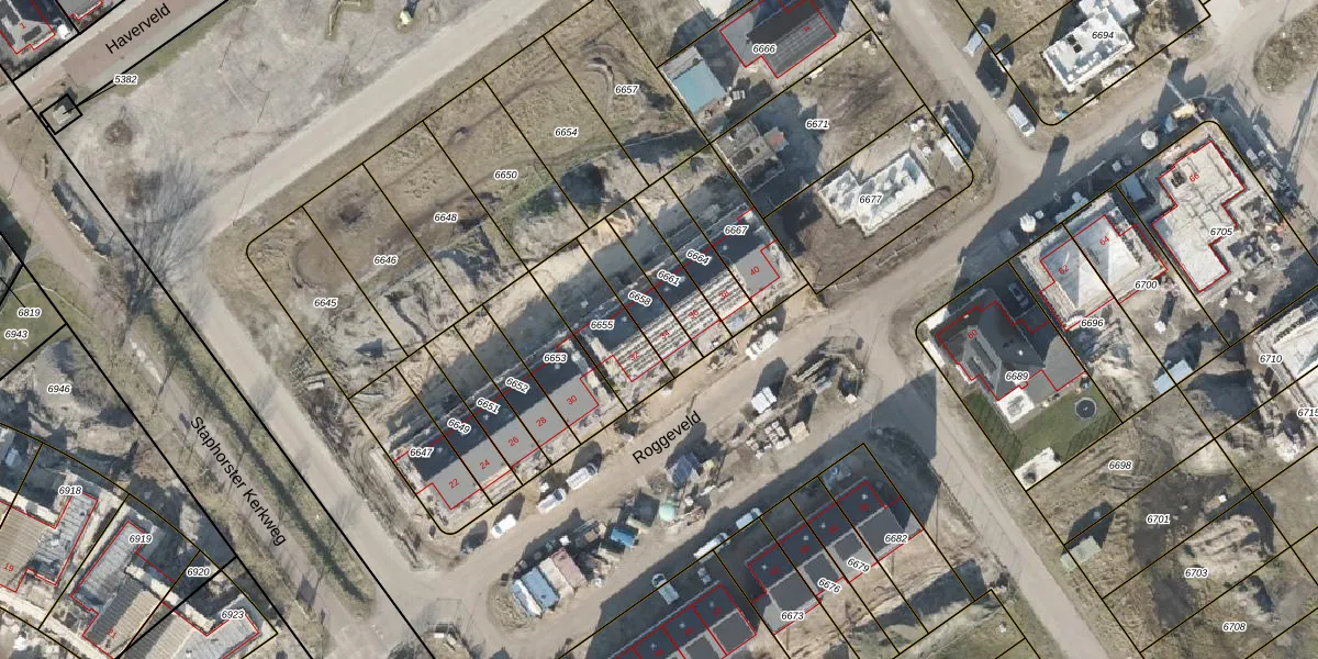 Roggeveld 34 is gelegen op kadastraal perceel SHT02AA6658. Deze kadastrale aanduiding is uniek en wordt gebruikt door het Kadaster om eigendomsrechten en andere zakelijke rechten vast te leggen. Het perceel maakt onderdeel uit van de kadastrale gemeente Staphorst.