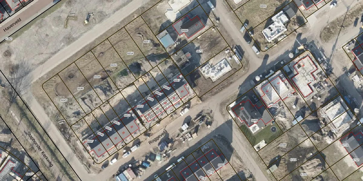 Roggeveld 40 is gelegen op kadastraal perceel SHT02AA6667. Deze kadastrale aanduiding is uniek en wordt gebruikt door het Kadaster om eigendomsrechten en andere zakelijke rechten vast te leggen. Het perceel maakt onderdeel uit van de kadastrale gemeente Staphorst.