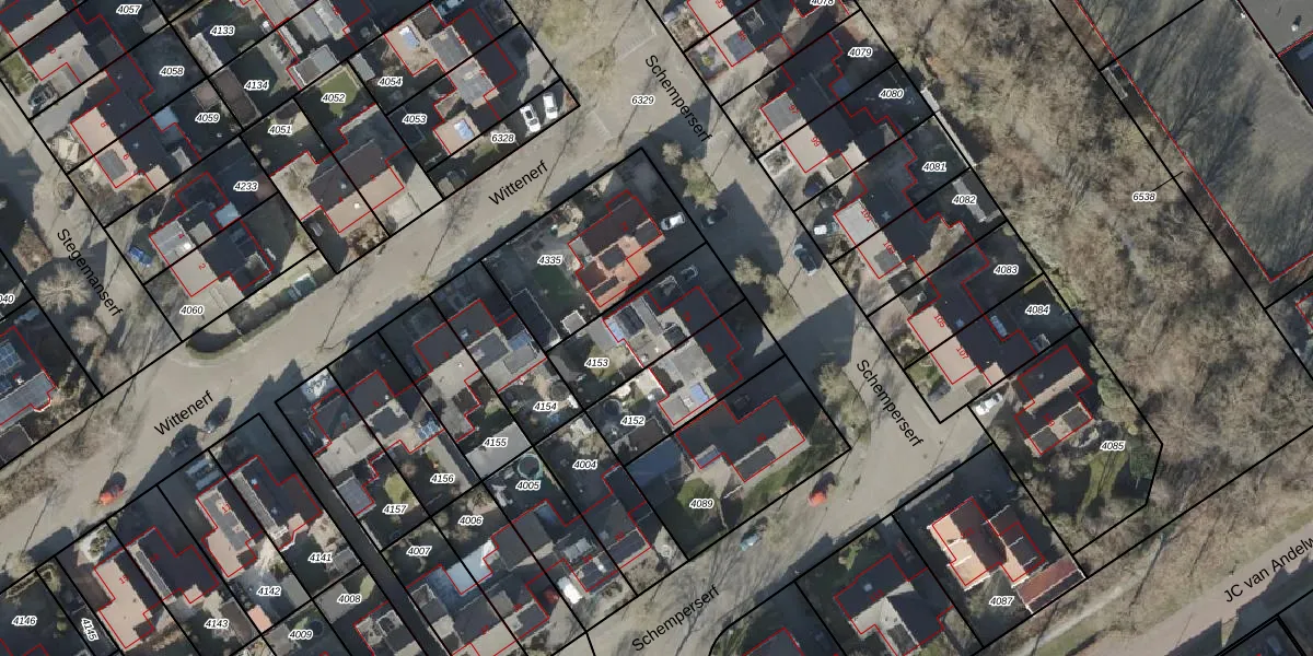 Het perceel waarop Schemperserf 76 staat heeft een oppervlakte van 315 m². Dit is een groot perceel. De perceeloppervlakte wordt geregistreerd door het Kadaster. Gedetailleerde informatie over de maten van dit perceel kunt u vinden in het rapport Kadastrale kaart met maatvoering van Schemperserf 76.