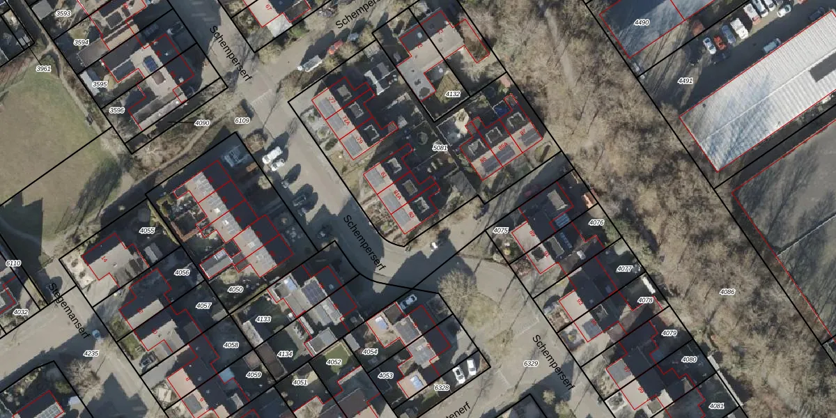 Het perceel waarop Schemperserf 83 staat heeft een oppervlakte van 1632 m². Dit is een zeer groot perceel. De perceeloppervlakte wordt geregistreerd door het Kadaster. Gedetailleerde informatie over de maten van dit perceel kunt u vinden in het rapport Kadastrale kaart met maatvoering van Schemperserf 83.