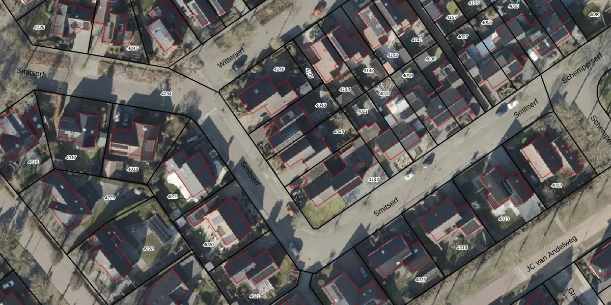 Het perceel waarop Smitserf 25 staat heeft een oppervlakte van 314 m². Dit is een groot perceel. De perceeloppervlakte wordt geregistreerd door het Kadaster. Gedetailleerde informatie over de maten van dit perceel kunt u vinden in het rapport Kadastrale kaart met maatvoering van Smitserf 25.