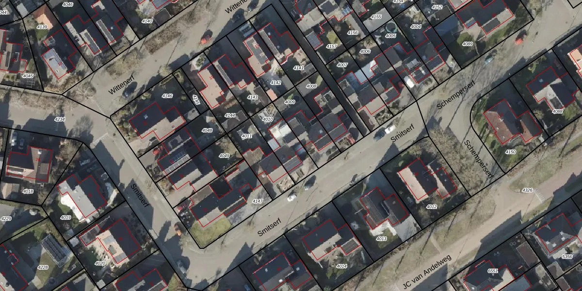 Het perceel waarop Smitserf 31 staat heeft een oppervlakte van 264 m². Dit is een middelgroot perceel. De perceeloppervlakte wordt geregistreerd door het Kadaster. Gedetailleerde informatie over de maten van dit perceel kunt u vinden in het rapport Kadastrale kaart met maatvoering van Smitserf 31.