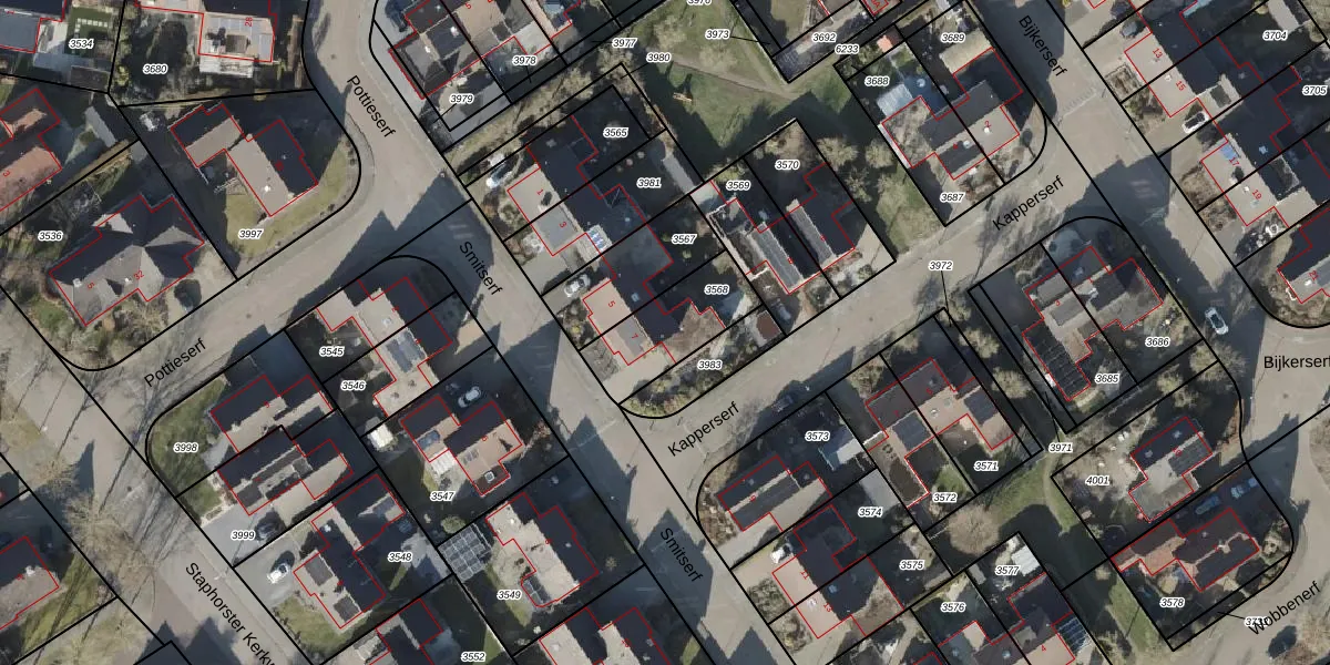 Smitserf 7 is gelegen op kadastraal perceel SHT02AA3568. Deze kadastrale aanduiding is uniek en wordt gebruikt door het Kadaster om eigendomsrechten en andere zakelijke rechten vast te leggen. Het perceel maakt onderdeel uit van de kadastrale gemeente Staphorst.