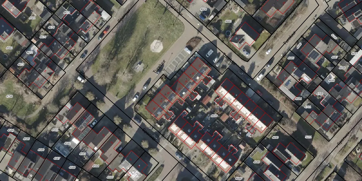 Het perceel waarop Tureluur 43 staat heeft een oppervlakte van 3150 m². Dit is een zeer groot perceel. De perceeloppervlakte wordt geregistreerd door het Kadaster. Gedetailleerde informatie over de maten van dit perceel kunt u vinden in het rapport Kadastrale kaart met maatvoering van Tureluur 43.