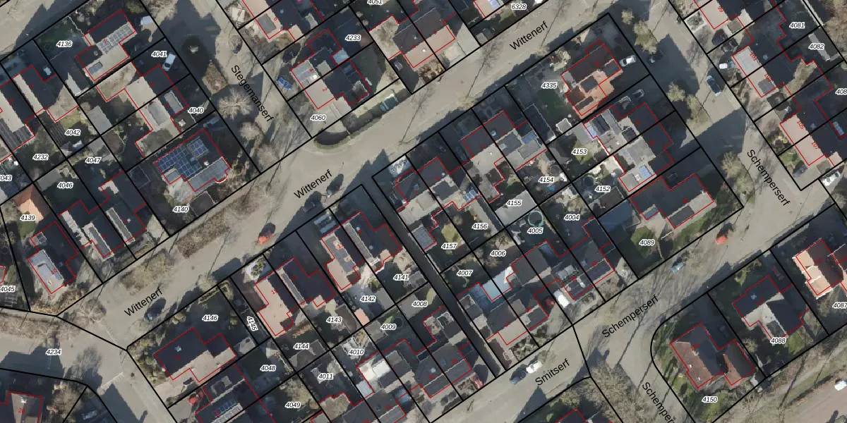 Gebruik de zoekbalk of klik op een perceel voor informatie over de adressen binnen dit perceel.