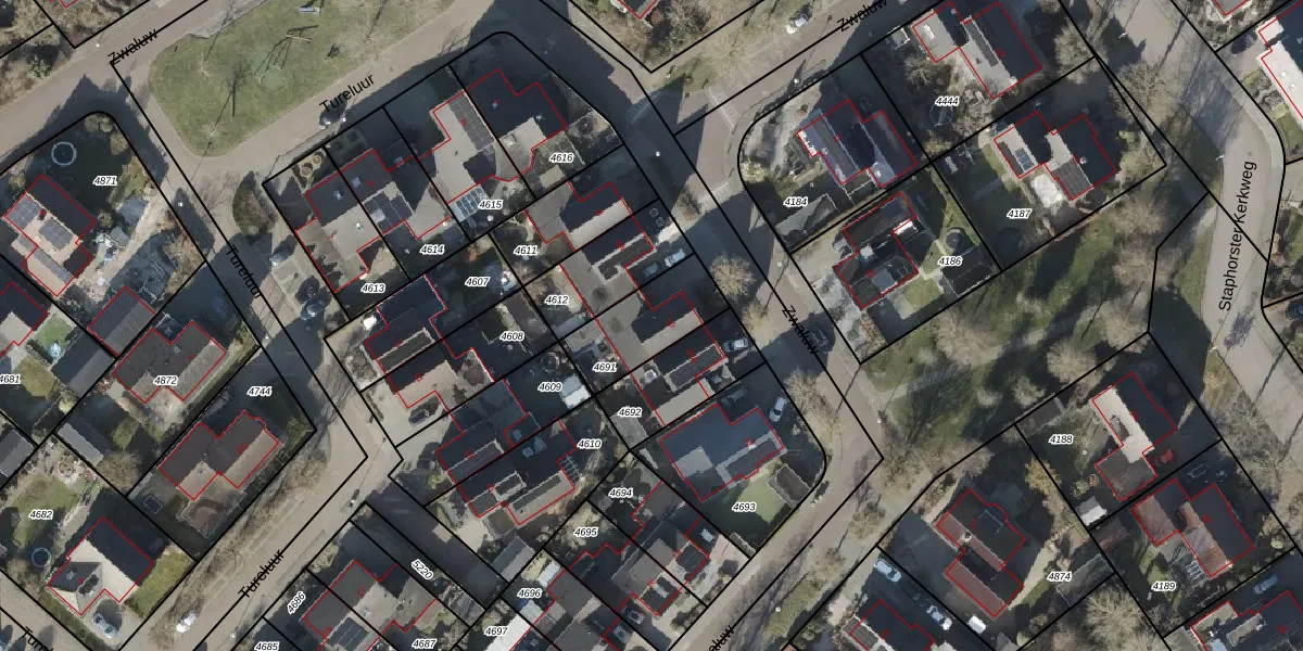 Zwaluw 10 is gelegen op kadastraal perceel SHT02AA4691. Deze kadastrale aanduiding is uniek en wordt gebruikt door het Kadaster om eigendomsrechten en andere zakelijke rechten vast te leggen. Het perceel maakt onderdeel uit van de kadastrale gemeente Staphorst.