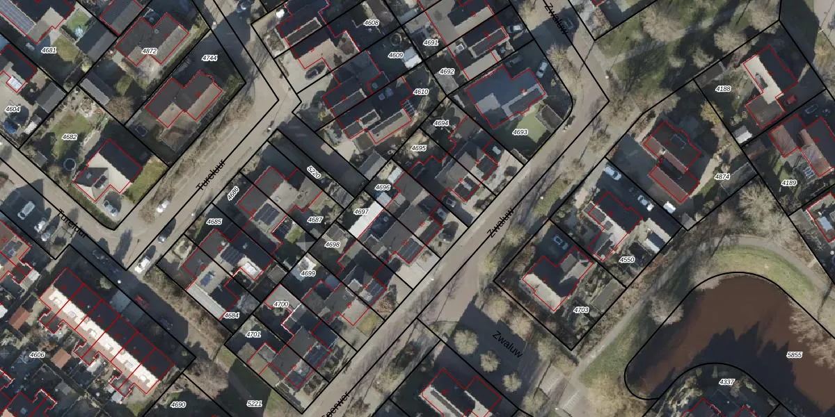 Het perceel waarop Zwaluw 18 staat heeft een oppervlakte van 250 m². Dit is een middelgroot perceel. De perceeloppervlakte wordt geregistreerd door het Kadaster. Gedetailleerde informatie over de maten van dit perceel kunt u vinden in het rapport Kadastrale kaart met maatvoering van Zwaluw 18.