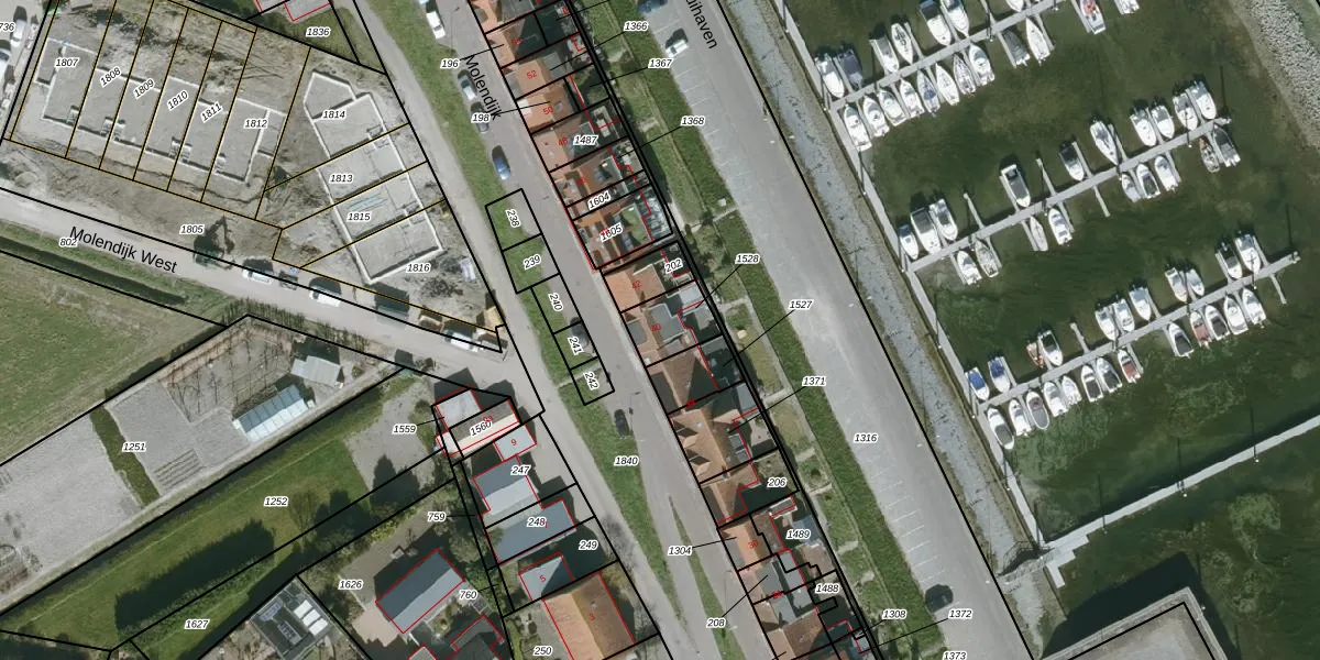 Het perceel waarop Molendijk 40 staat heeft een oppervlakte van 116 m². Dit is een middelgroot perceel. De perceeloppervlakte wordt geregistreerd door het Kadaster. Gedetailleerde informatie over de maten van dit perceel kunt u vinden in het rapport Kadastrale kaart met maatvoering van Molendijk 40.