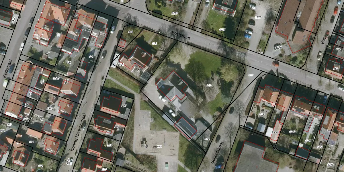 Het perceel waarop Poststraat 12 staat heeft een oppervlakte van 2050 m². Dit is een zeer groot perceel. De perceeloppervlakte wordt geregistreerd door het Kadaster. Gedetailleerde informatie over de maten van dit perceel kunt u vinden in het rapport Kadastrale kaart met maatvoering van Poststraat 12.