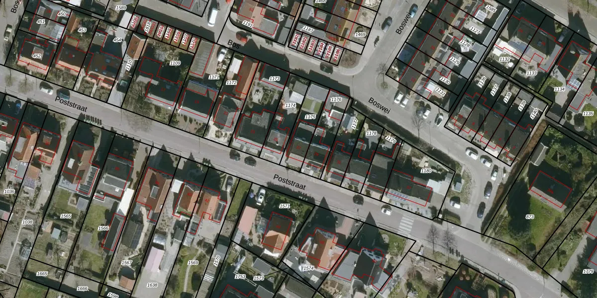 Gebruik de zoekbalk of klik op een perceel voor informatie over de adressen binnen dit perceel.