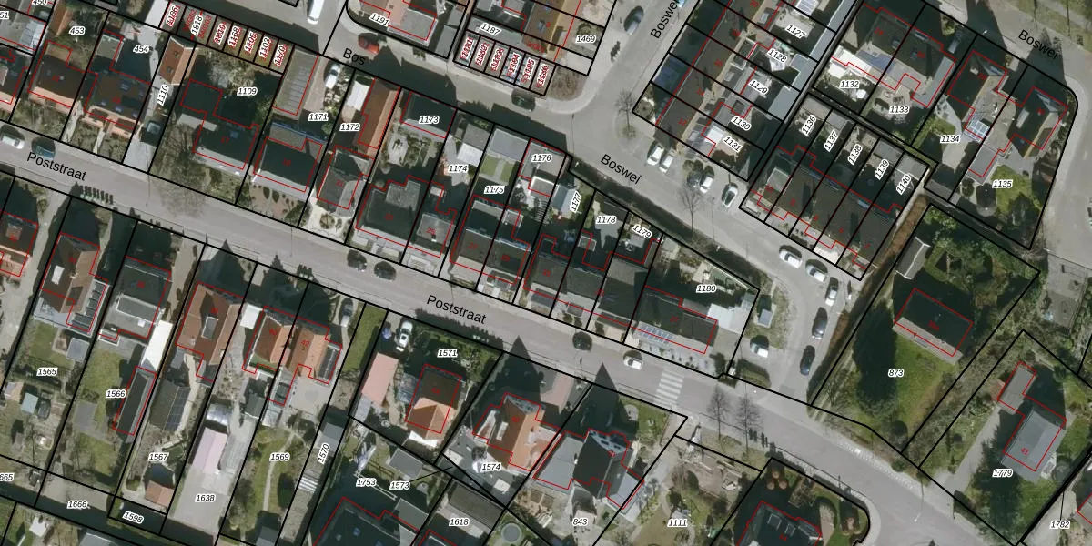 Gebruik de zoekbalk of klik op een perceel voor informatie over de adressen binnen dit perceel.