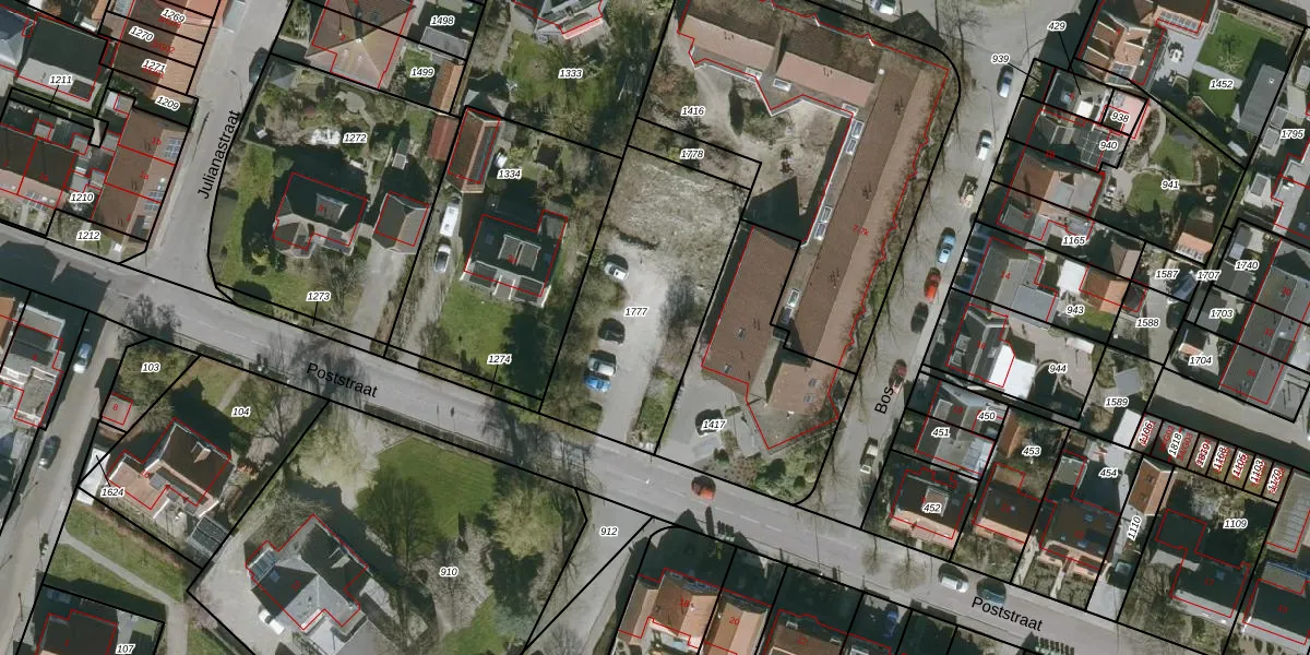 Het perceel waarop Poststraat 5-b staat heeft een oppervlakte van 836 m². Dit is een groot perceel. De perceeloppervlakte wordt geregistreerd door het Kadaster. Gedetailleerde informatie over de maten van dit perceel kunt u vinden in het rapport Kadastrale kaart met maatvoering van Poststraat 5-b.