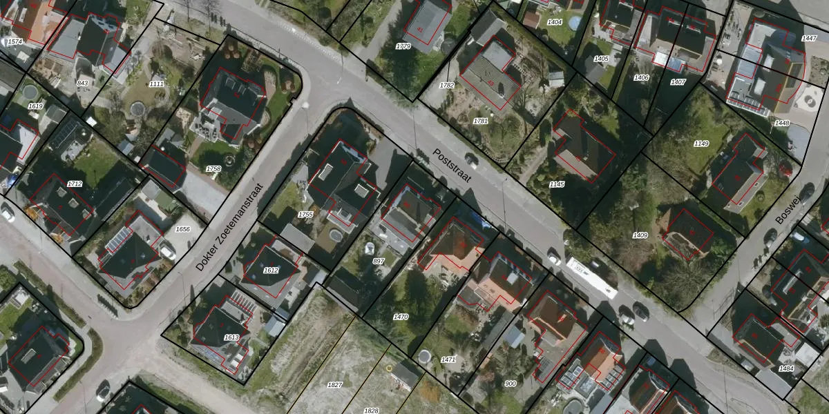 Gebruik de zoekbalk of klik op een perceel voor informatie over de adressen binnen dit perceel.