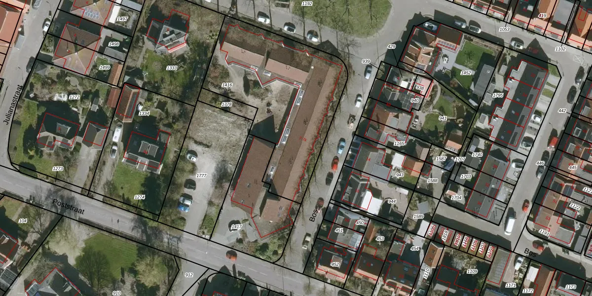 Het perceel waarop Poststraat 7-c staat heeft een oppervlakte van 1625 m². Dit is een zeer groot perceel. De perceeloppervlakte wordt geregistreerd door het Kadaster. Gedetailleerde informatie over de maten van dit perceel kunt u vinden in het rapport Kadastrale kaart met maatvoering van Poststraat 7-c.