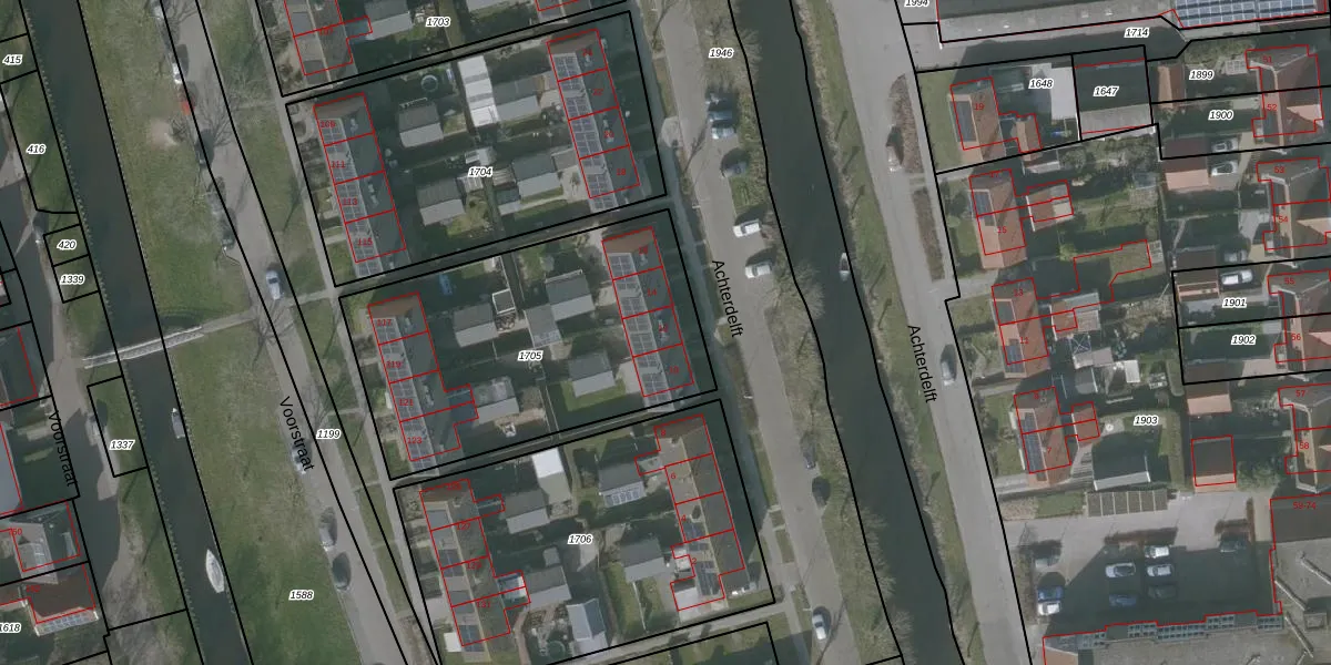 Het perceel waarop Achterdelft 12 staat heeft een oppervlakte van 1477 m². Dit is een zeer groot perceel. De perceeloppervlakte wordt geregistreerd door het Kadaster. Gedetailleerde informatie over de maten van dit perceel kunt u vinden in het rapport Kadastrale kaart met maatvoering van Achterdelft 12.