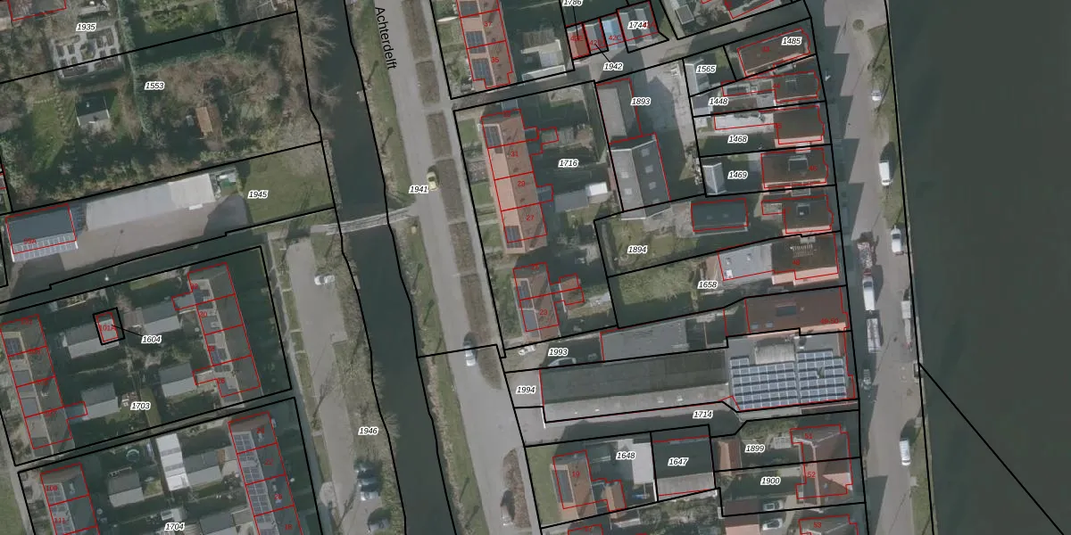 Het perceel waarop Achterdelft 25 staat heeft een oppervlakte van 1115 m². Dit is een zeer groot perceel. De perceeloppervlakte wordt geregistreerd door het Kadaster. Gedetailleerde informatie over de maten van dit perceel kunt u vinden in het rapport Kadastrale kaart met maatvoering van Achterdelft 25.