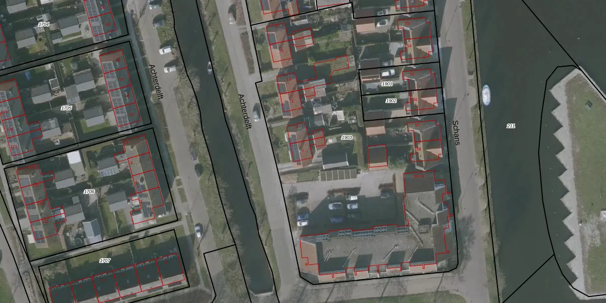Het perceel waarop het adres ligt is SVR00-A-1903. De afkorting 'SVR00' staat voor kadastrale gemeente Staveren. Het perceel is kleiner dan gemiddeld in Staveren. Het perceel is 4549 m² groot, terwijl het gemiddelde ligt op 4811,65 m². De grootste perceeloppervlakte in de kadastrale gemeente is 36,1 ha. De kleinste oppervlakte bedraagt 0 m². Er zijn 25 adressen aanwezig op het perceel. De laatste wijziging in het de Basisregistratie Kadaster (BRK) was op 16-04-2007.