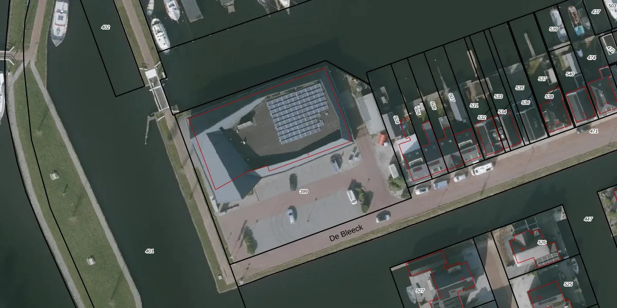 De Bleeck 1 is gelegen op kadastraal perceel SVR00C399. Deze kadastrale aanduiding is uniek en wordt gebruikt door het Kadaster om eigendomsrechten en andere zakelijke rechten vast te leggen. Het perceel maakt onderdeel uit van de kadastrale gemeente Staveren.