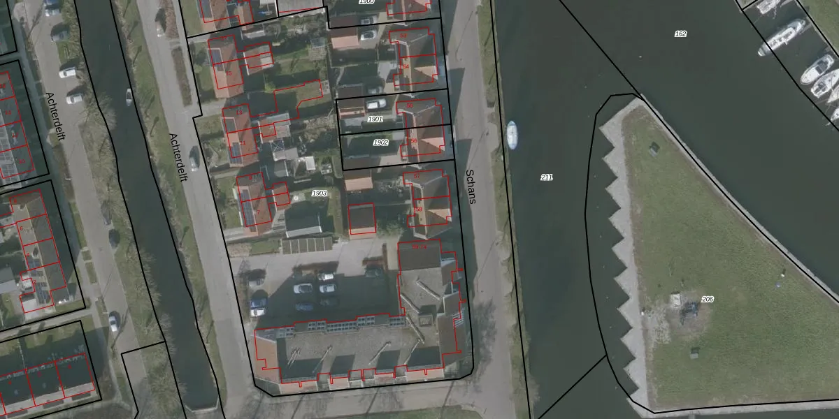 Het perceel waarop Schans 58 staat heeft een oppervlakte van 4549 m². Dit is een zeer groot perceel. De perceeloppervlakte wordt geregistreerd door het Kadaster. Gedetailleerde informatie over de maten van dit perceel kunt u vinden in het rapport Kadastrale kaart met maatvoering van Schans 58.