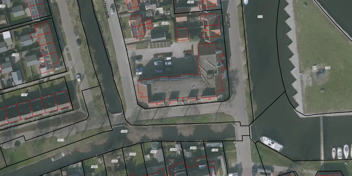 Het perceel waarop Schans 72 staat heeft een oppervlakte van 4549 m². Dit is een zeer groot perceel. De perceeloppervlakte wordt geregistreerd door het Kadaster. Gedetailleerde informatie over de maten van dit perceel kunt u vinden in het rapport Kadastrale kaart met maatvoering van Schans 72.
