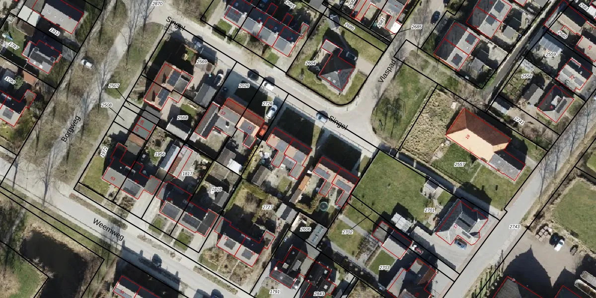 Het perceel waarop Singel 7 staat heeft een oppervlakte van 1984 m². Dit is een zeer groot perceel. De perceeloppervlakte wordt geregistreerd door het Kadaster. Gedetailleerde informatie over de maten van dit perceel kunt u vinden in het rapport Kadastrale kaart met maatvoering van Singel 7.