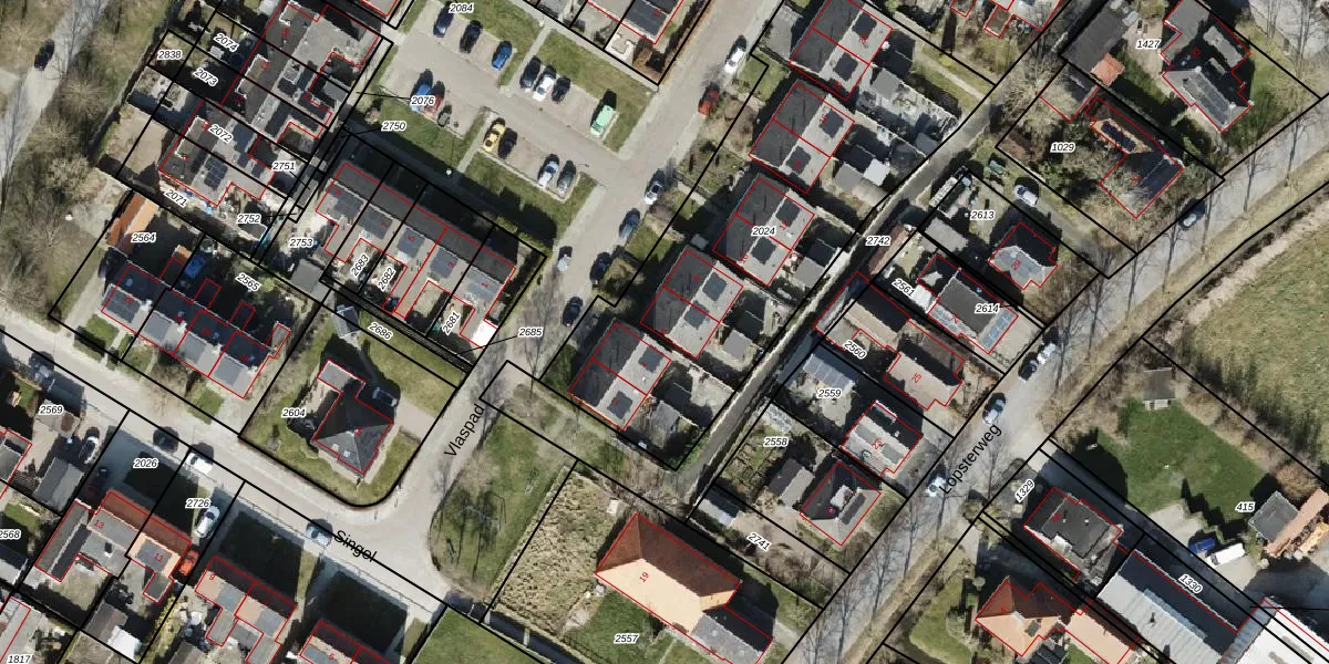 Het perceel waarop Vlaspad 6 staat heeft een oppervlakte van 1955 m². Dit is een zeer groot perceel. De perceeloppervlakte wordt geregistreerd door het Kadaster. Gedetailleerde informatie over de maten van dit perceel kunt u vinden in het rapport Kadastrale kaart met maatvoering van Vlaspad 6.