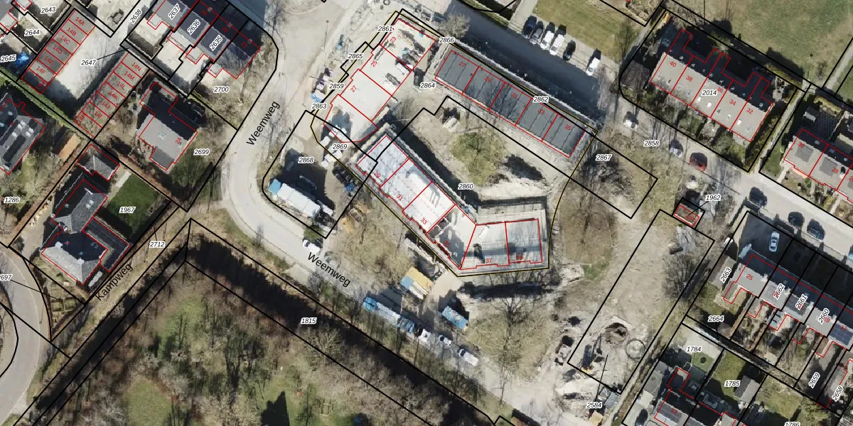Het perceel waarop Weemweg 33 staat heeft een oppervlakte van 1261 m². Dit is een zeer groot perceel. De perceeloppervlakte wordt geregistreerd door het Kadaster. Gedetailleerde informatie over de maten van dit perceel kunt u vinden in het rapport Kadastrale kaart met maatvoering van Weemweg 33.