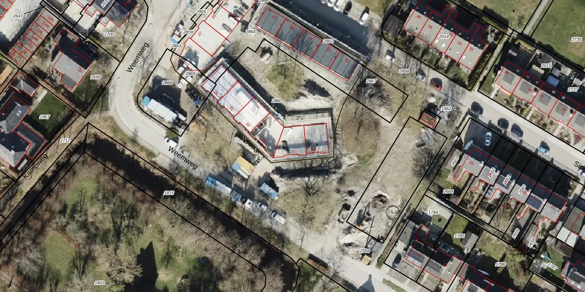 Het perceel waarop Weemweg 37 staat heeft een oppervlakte van 1261 m². Dit is een zeer groot perceel. De perceeloppervlakte wordt geregistreerd door het Kadaster. Gedetailleerde informatie over de maten van dit perceel kunt u vinden in het rapport Kadastrale kaart met maatvoering van Weemweg 37.
