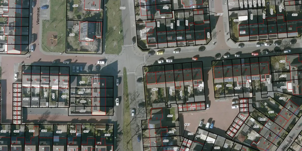Het perceel waarop Acacialaan 2 staat heeft een oppervlakte van 714 m². Dit is een groot perceel. De perceeloppervlakte wordt geregistreerd door het Kadaster. Gedetailleerde informatie over de maten van dit perceel kunt u vinden in het rapport Kadastrale kaart met maatvoering van Acacialaan 2.