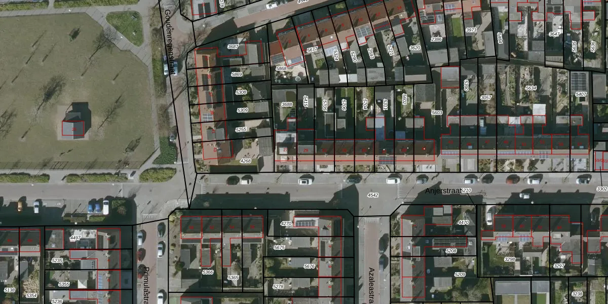Het perceel waarop Anjerstraat 29 staat heeft een oppervlakte van 168 m². Dit is een middelgroot perceel. De perceeloppervlakte wordt geregistreerd door het Kadaster. Gedetailleerde informatie over de maten van dit perceel kunt u vinden in het rapport Kadastrale kaart met maatvoering van Anjerstraat 29.